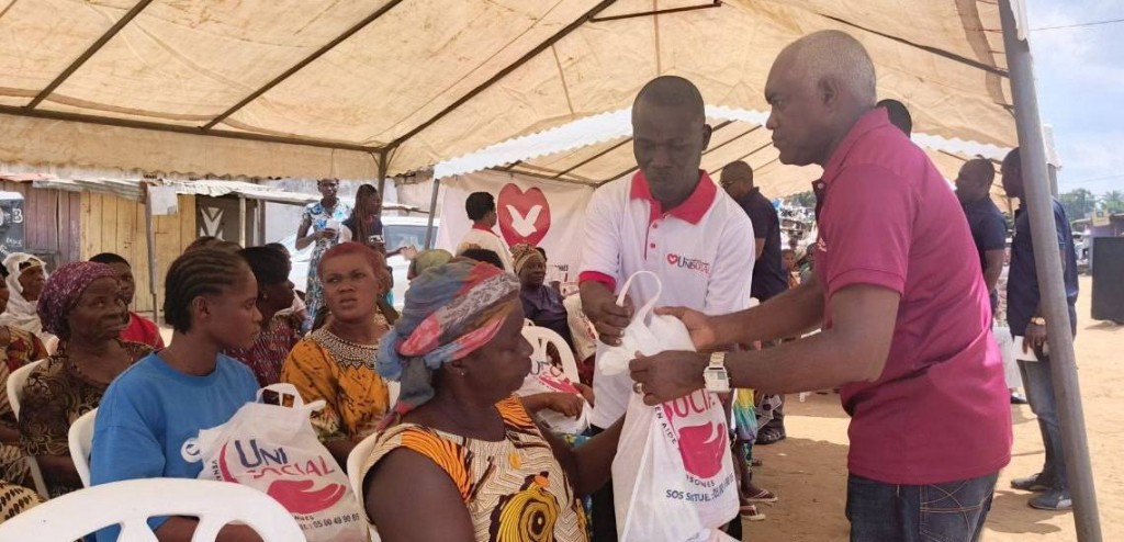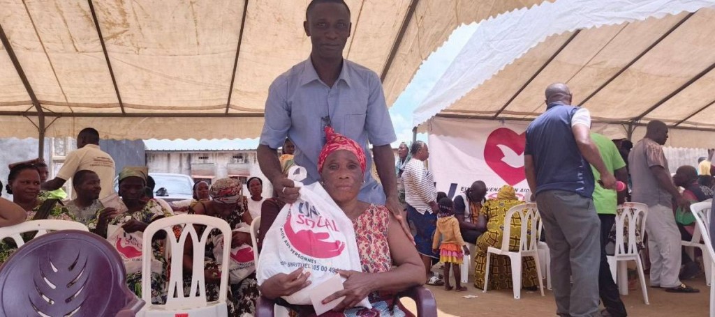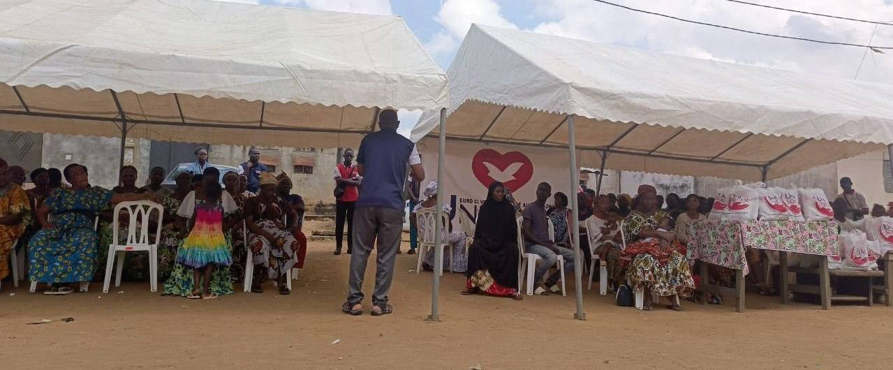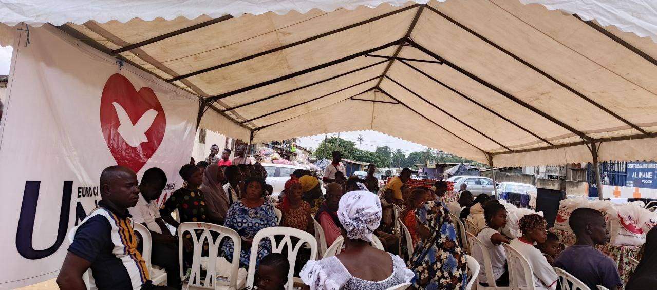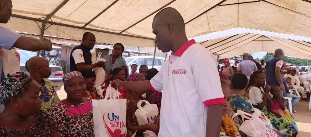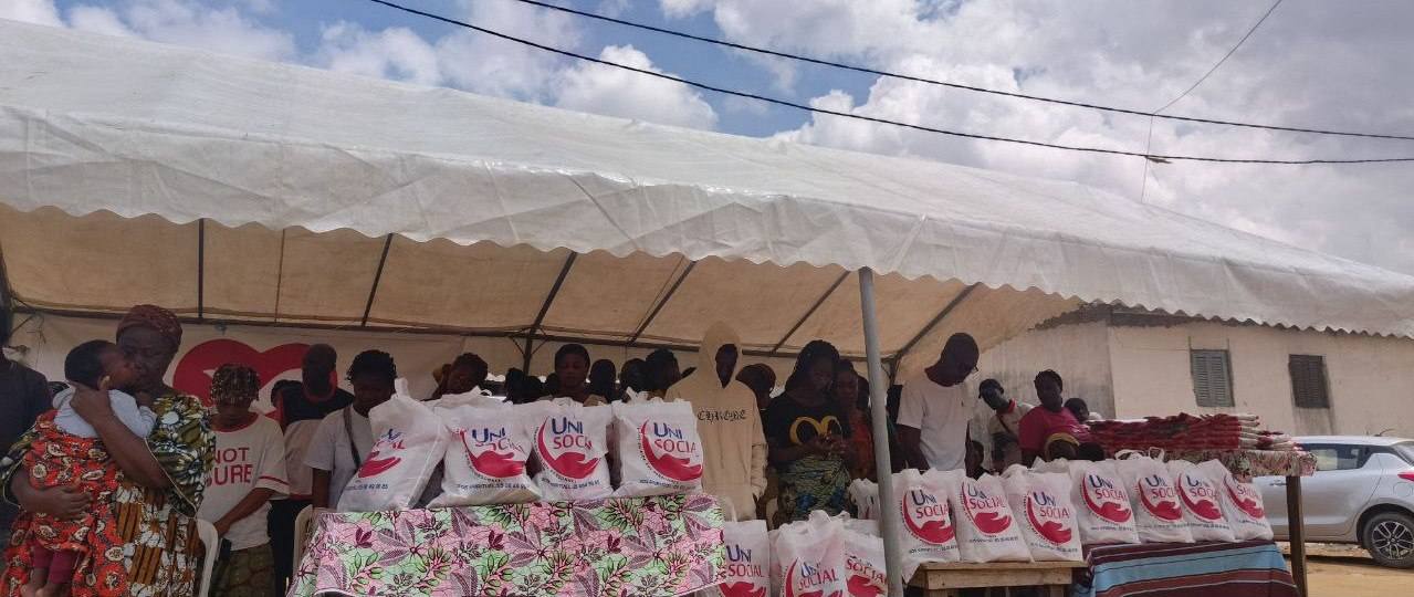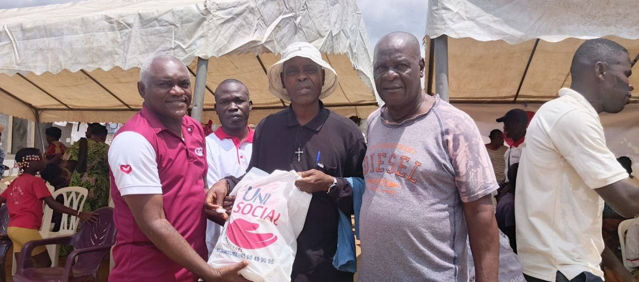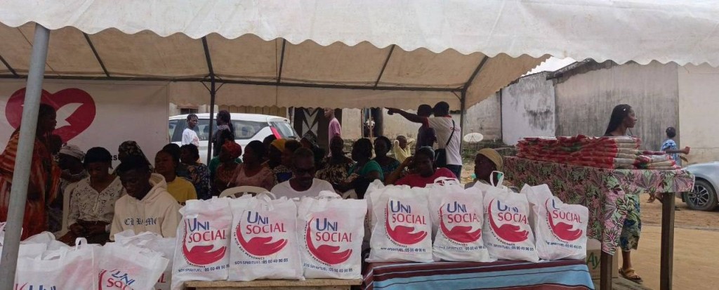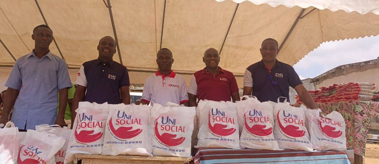 L'AMOUR de Dieu manifesté par UNISOCIAL ( branche sociale de l'église universelle cote D'Ivoire) Mathieu. 25:35 A Abobo plaque 1