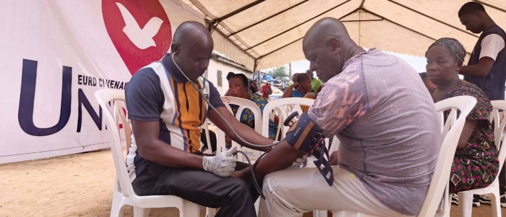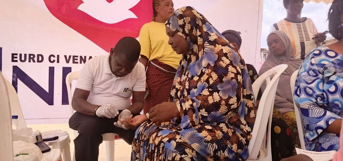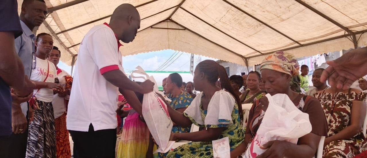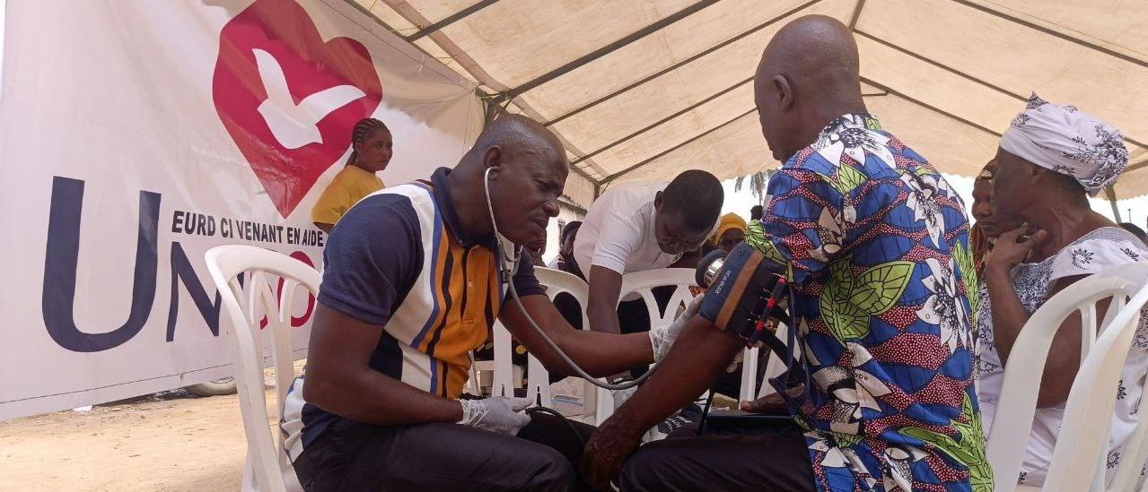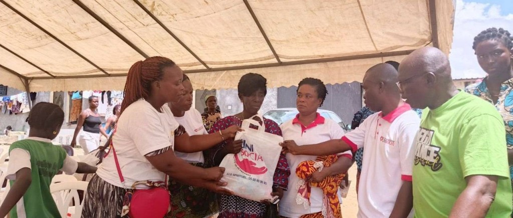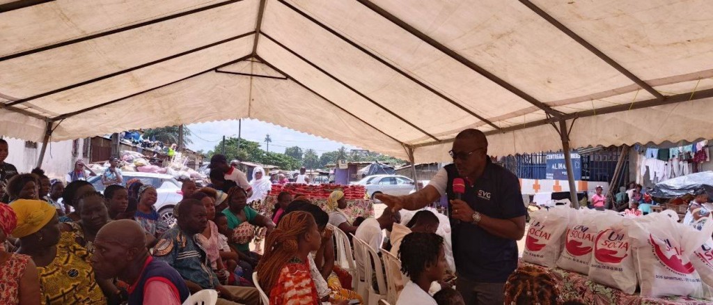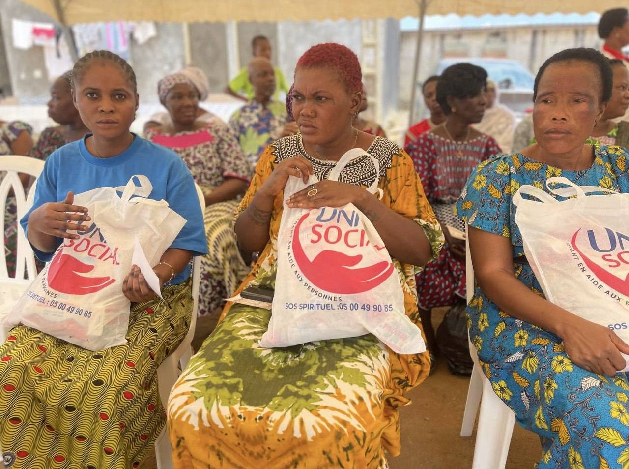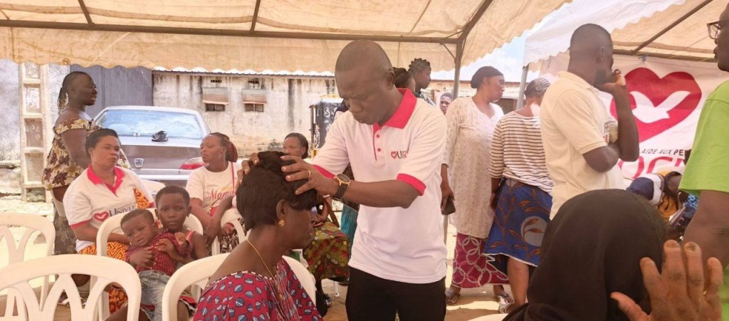 L'AMOUR de Dieu manifesté par UNISOCIAL ( branche sociale de l'église universelle cote D'Ivoire) Mathieu. 25:35 A Abobo plaque 1